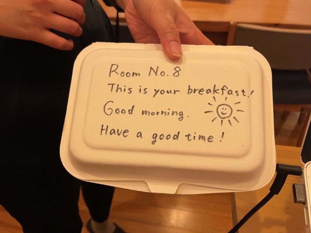 宿泊代に+800円で朝食(サンドイッチボックス)を提供しているのですが、SNS伝手に「朝食美味しかった!」とメッセージが届き、とても嬉しくなりました。サンドイッチはスタッフのお手製なので、より嬉しい…!