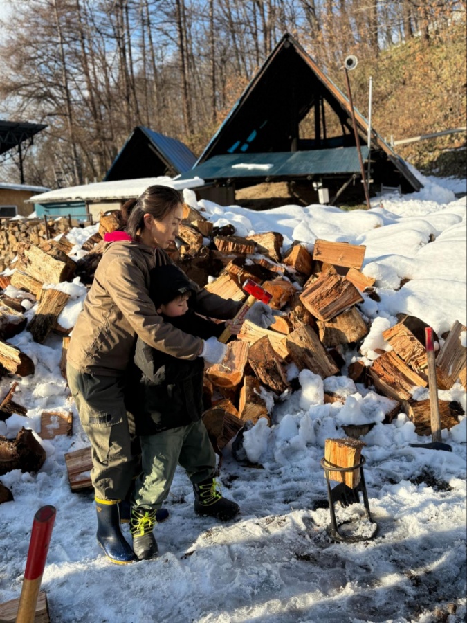 薪を割り、運び、炭火でもちを焼く―昔から暮らしの中にあった「炭のある風景」を、実際に体を動かしながら体験できます!